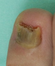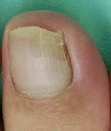 白癬菌が皮膚に感染したものがいわゆる水虫ですが、白癬菌が爪に感染すると爪水虫となり爪の変形や変色を来たします。